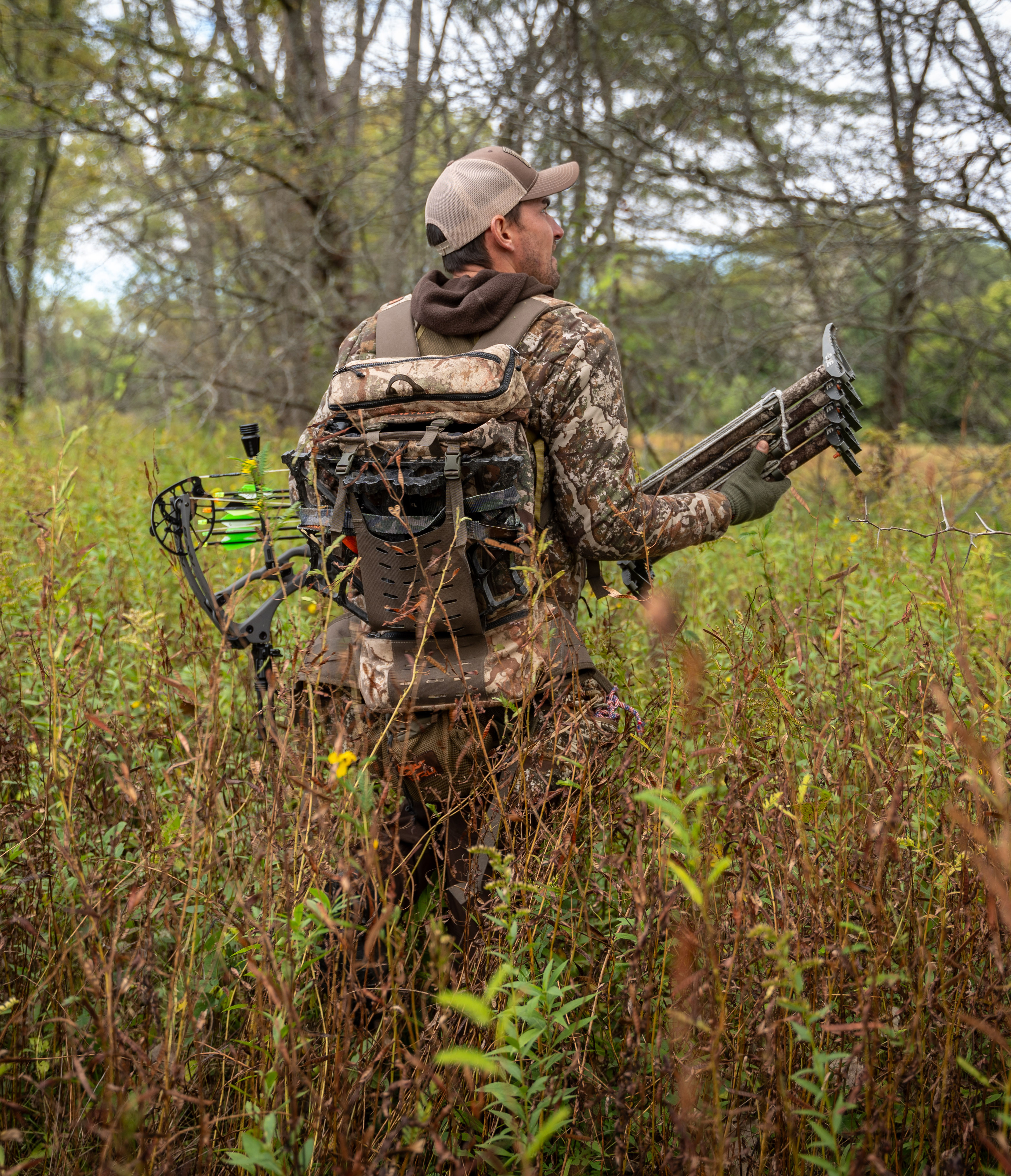 To remove your hunting platform, you can do so while your tether is still attached and you have not started your descent yet or while your lineman belt is attached and you are ready to start descending.